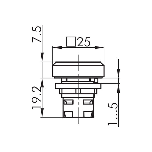 Push-Push button actuator Ø30mm Platinum series flat metal, extended. Push ON-Push OFF