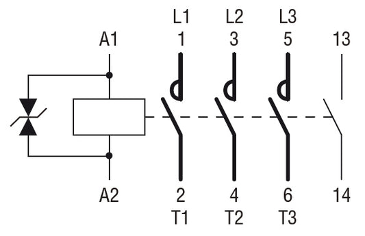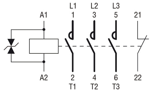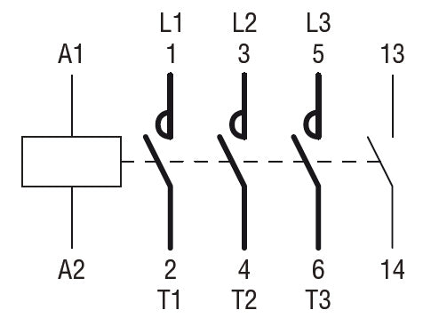 Three-pole contactor, IEC operating current Ie (AC3) = 6A, AC coil 1NO auxiliary contact