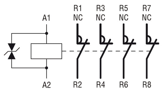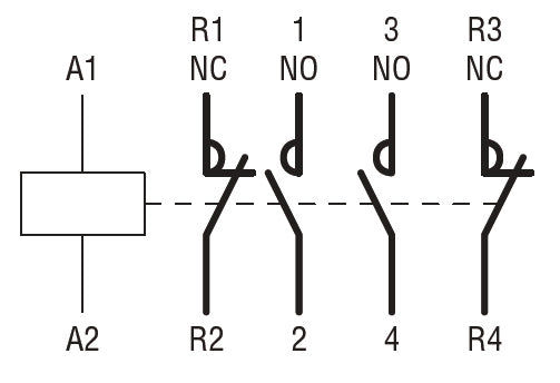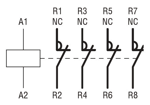 Four-pole contactor, IEC operating current Ith (AC1) = 32A, DC coil, 4NC