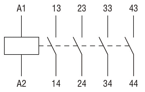 Four-pole contactor, IEC operating current Ith (AC1) = 32A, AC coil, 4NC