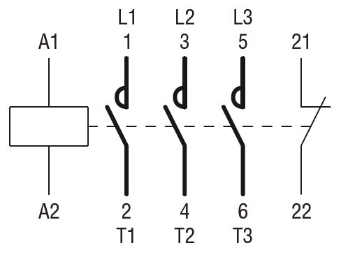 Three-pole contactor, IEC operating current Ie (AC3) = 6A, 1NC auxiliary contact