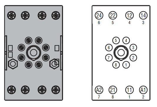 Socket for relay for fitting on DIN rail or with screws, 8-Pin for HR702C... screw terminals