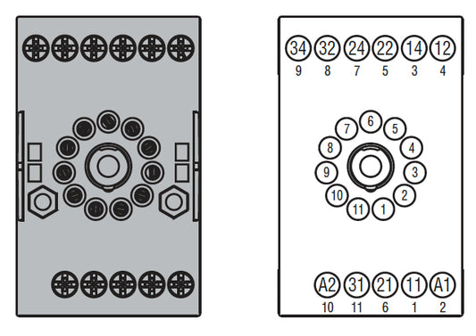 Socket for relay for fitting on DIN rail or with screws, 11-Pin for HR703C... screw terminals