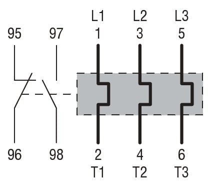 Motor protection relay, phase failure/single-phase sensitive. Three-pole (three-phase), automatic resetting. Direct mounting on BG06, BG09, BG12 mini-contactors