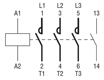 Three-pole contactor, IEC operating current Ie (AC3) = 6A, DC coil 1NO auxiliary contact