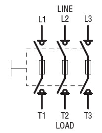 Three-pole disconnect switch with fuse holder (UL98). fuse type. Left command pole
